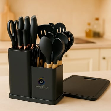 Conjunto 19 Peças Utensílios Cozinha Silicone Jogo Cor Cinza